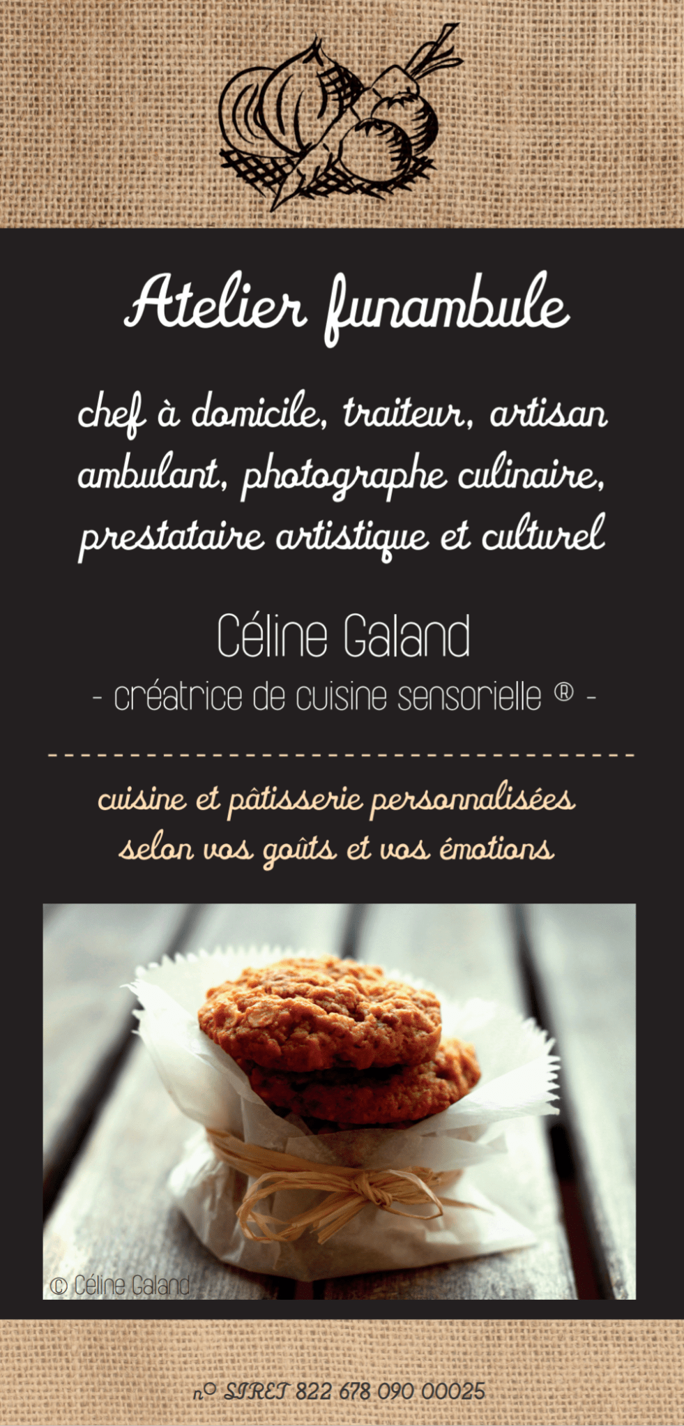 Avec mon entreprise individuelle de cuisine et pâtisserie créée en 2016, j’adresse mes services de chef à domicile, traiteur, artisan ambulant, photographe culinaire, prestataire artistique et culturel, aux particuliers et aux professionnels.